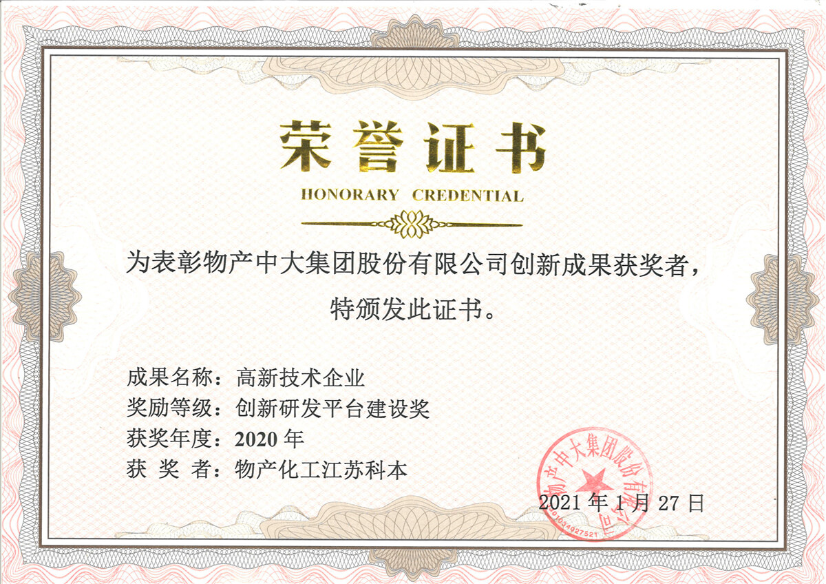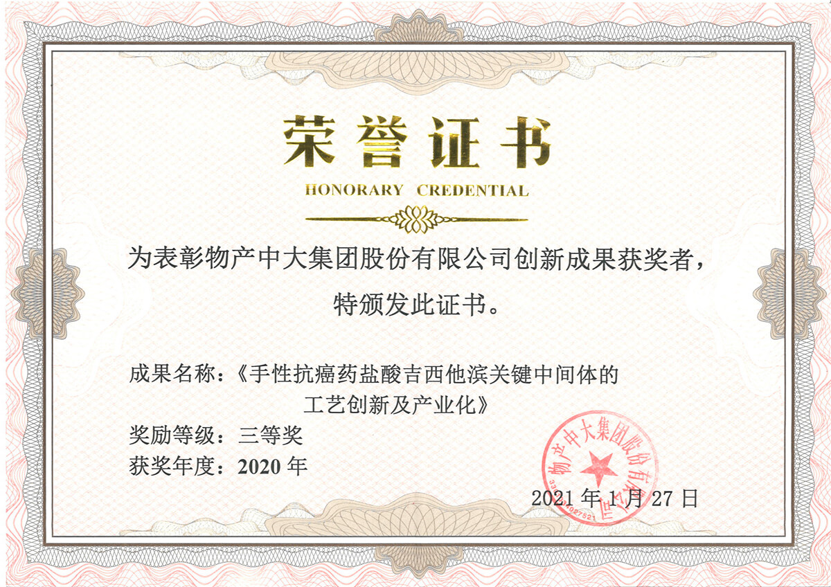 《手性抗癌藥鹽酸吉西他濱關(guān)鍵中間體的工藝創(chuàng)新及產(chǎn)業(yè)化》;高新技術(shù)企業(yè)(創(chuàng)新研發(fā)平臺(tái)建設(shè)獎(jiǎng)) |